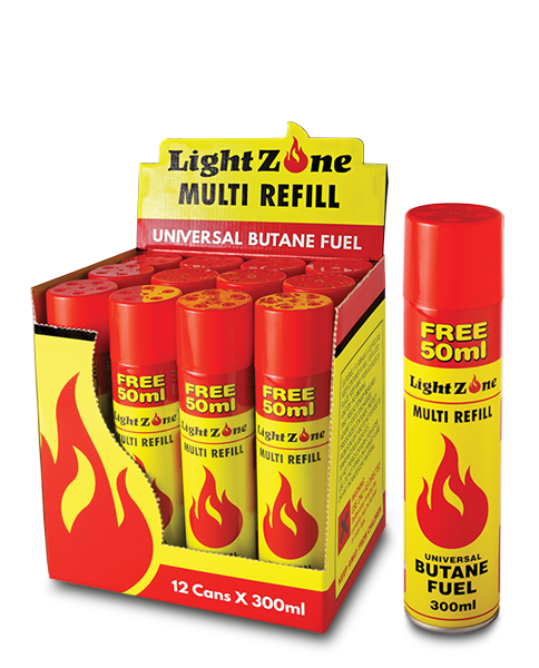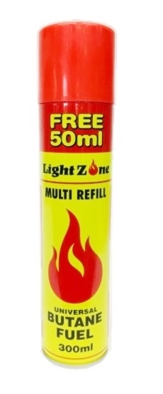 LightZone 300ml Lighter Gas Multi Refill Universal Butane Fuel. Fill all major lighters fast and effectively.